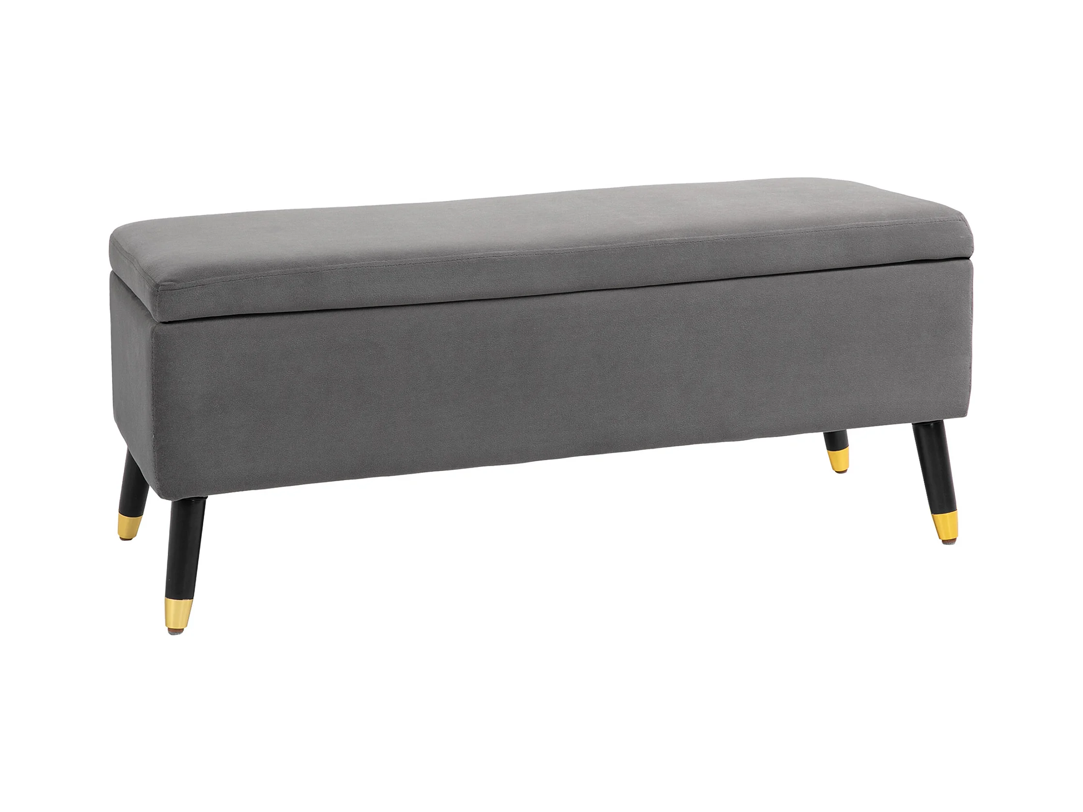 Banc de rangement rembourré, structure bois et métal, tissu polyester, gris foncé (100x40x42 cm)