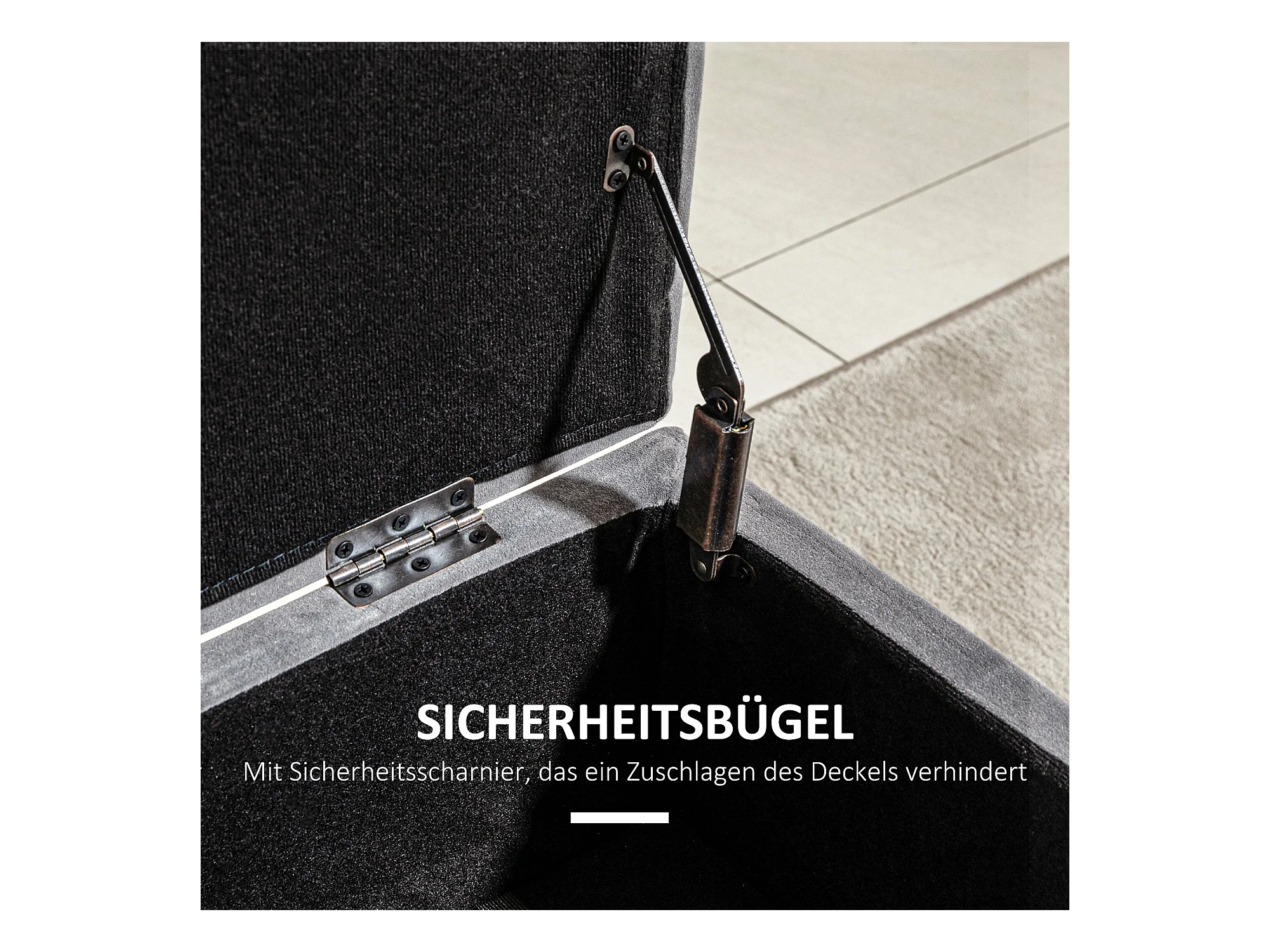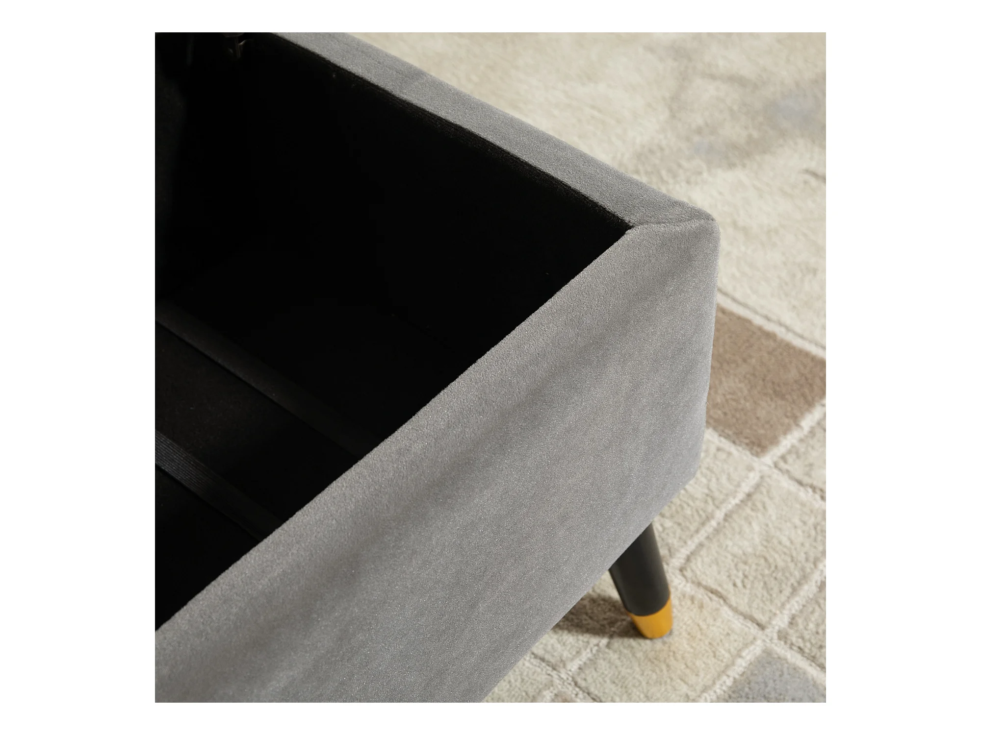 Banc coffre avec rangement, velours et métal, anthracite (110x43x45 cm)