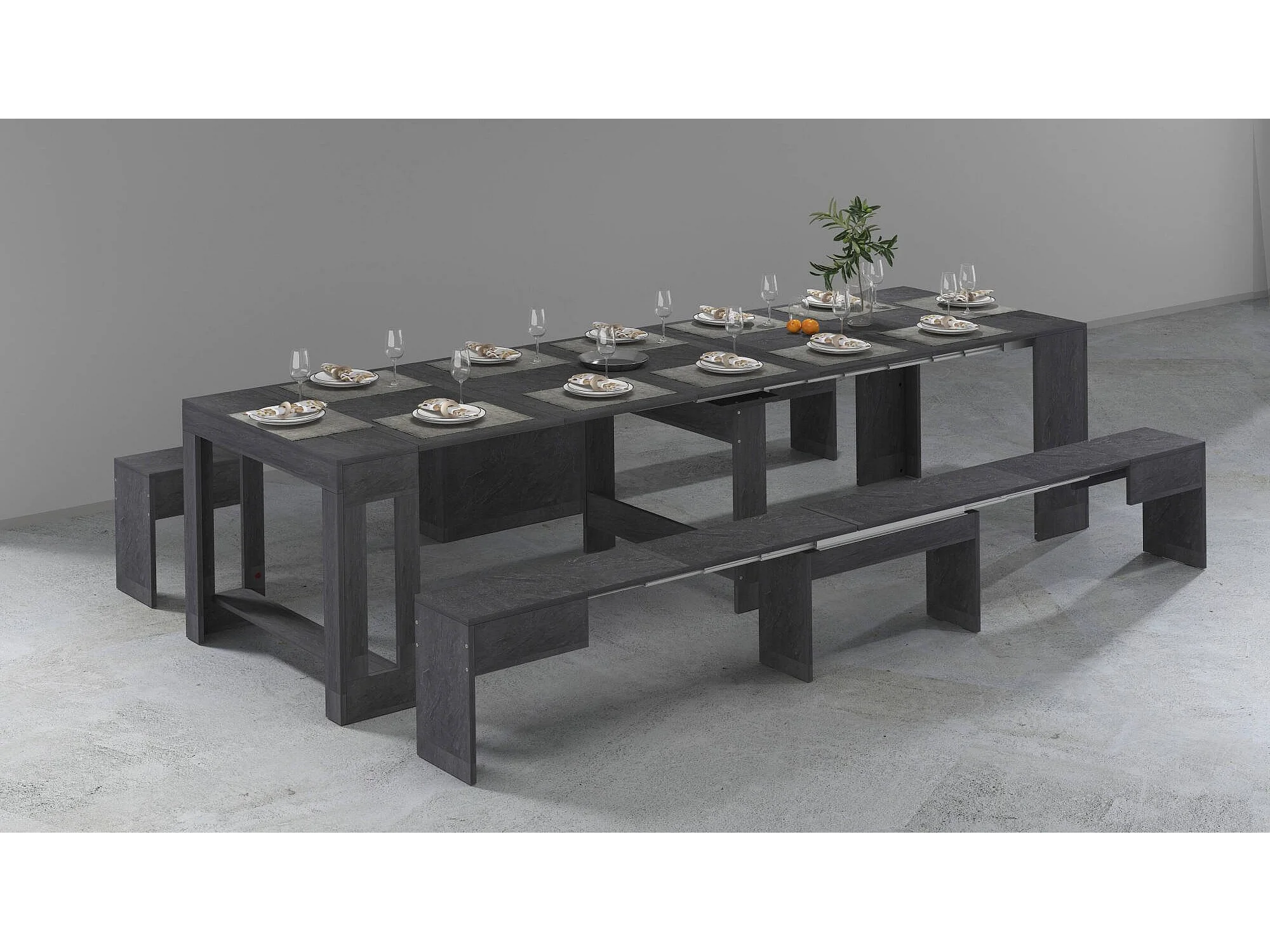 Banc Dcolasuon, Lot de 2 Sièges pour table à manger, Bancs extensibles, 290x25h45 cm, Ardoise