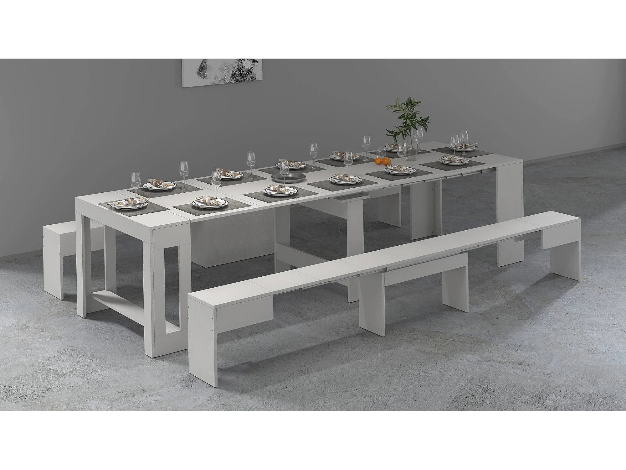 Banc Dcolasuon, Lot de 2 Sièges pour table à manger, Bancs extensibles, 290x25h45 cm, Blanc