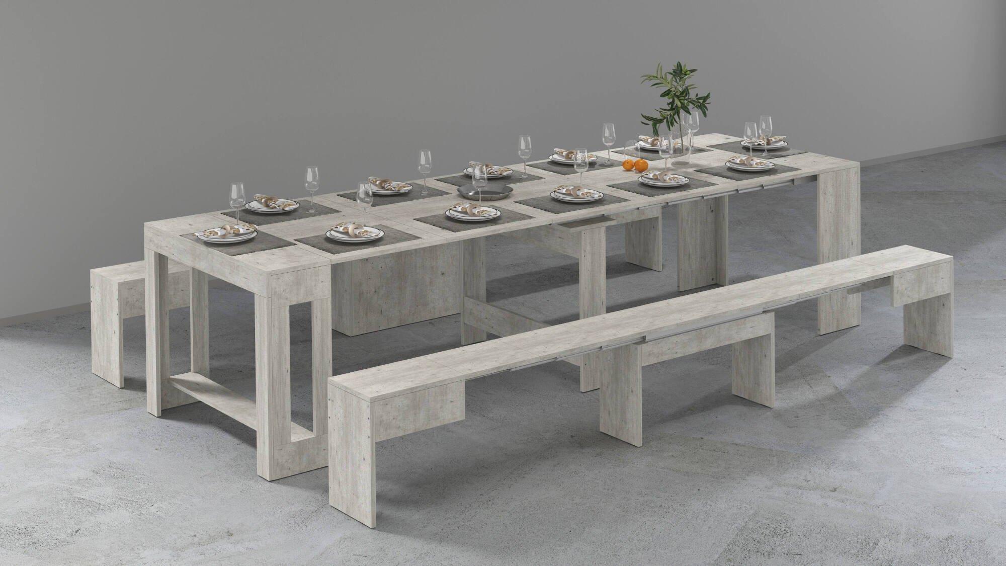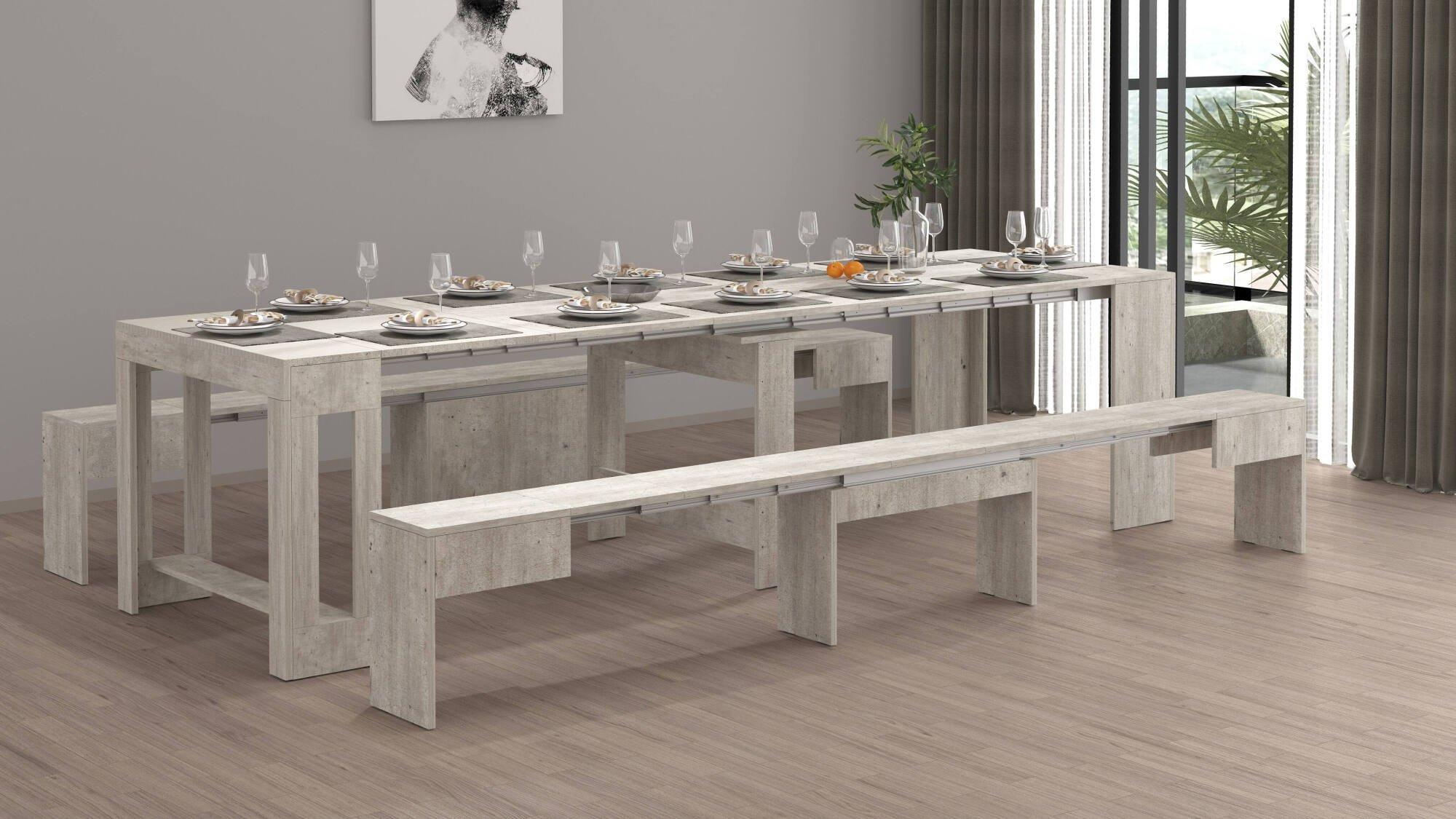 Banc Dcolasuon, Lot de 2 Sièges pour table à manger, Bancs extensibles, 290x25h45 cm, Ciment