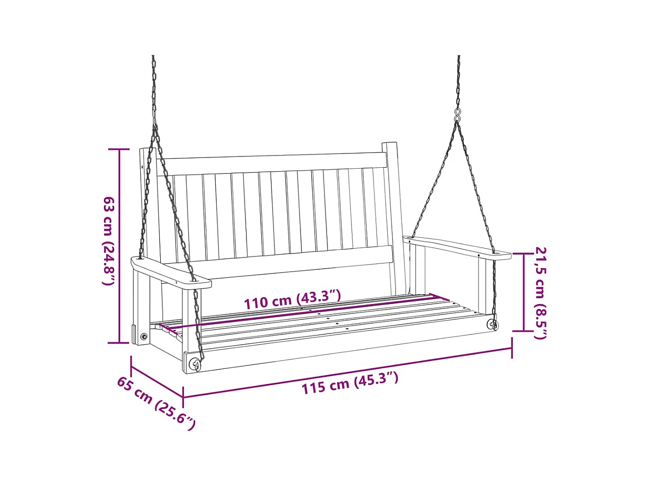 Banc de balançoire de jardin chaînes en métal bois massif sapin