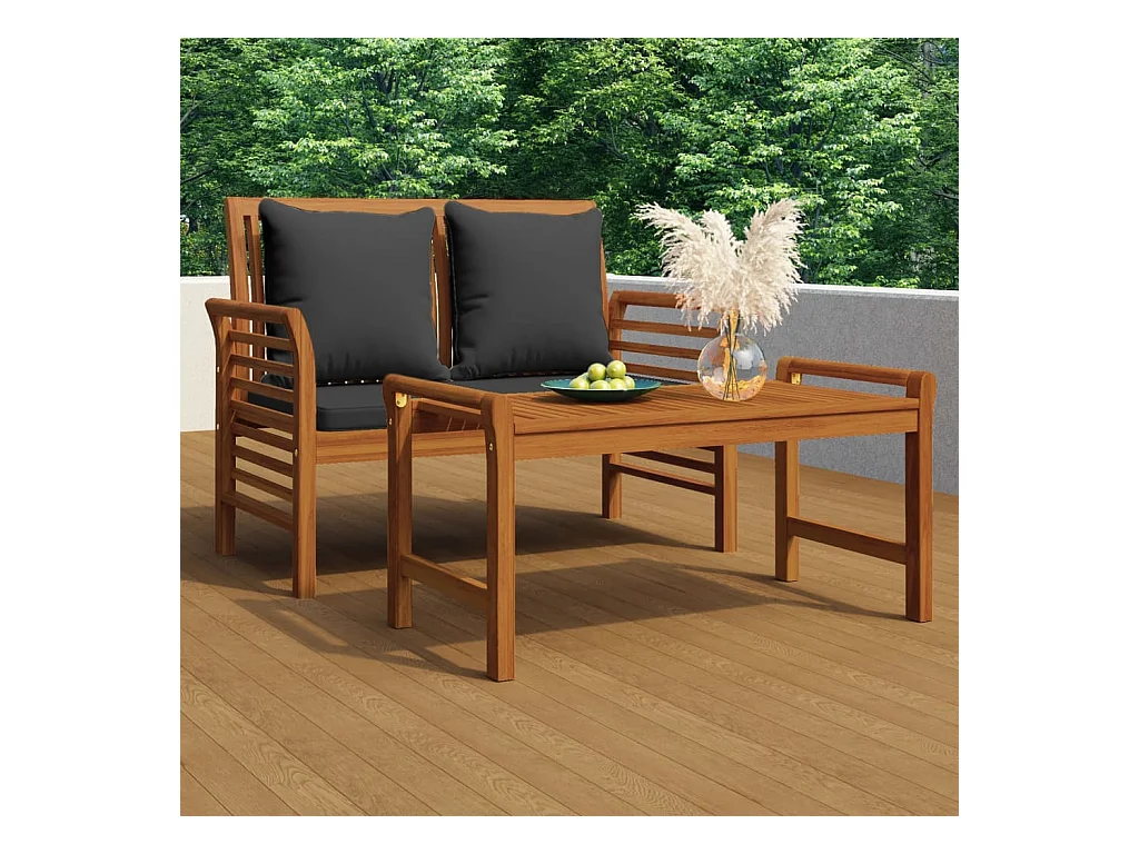 Banc de jardin 2 places avec coussin 120cm Bois d'acacia massif