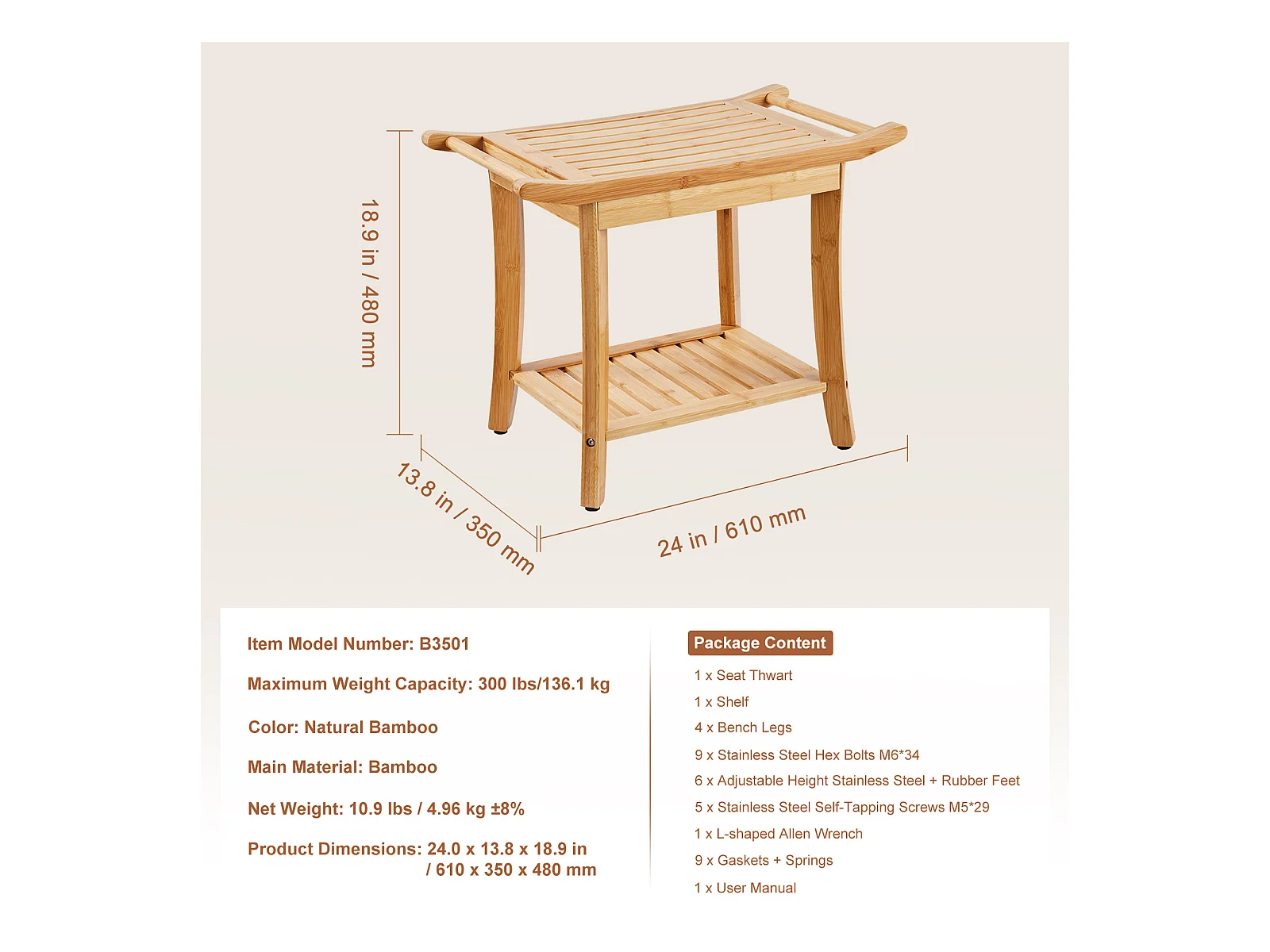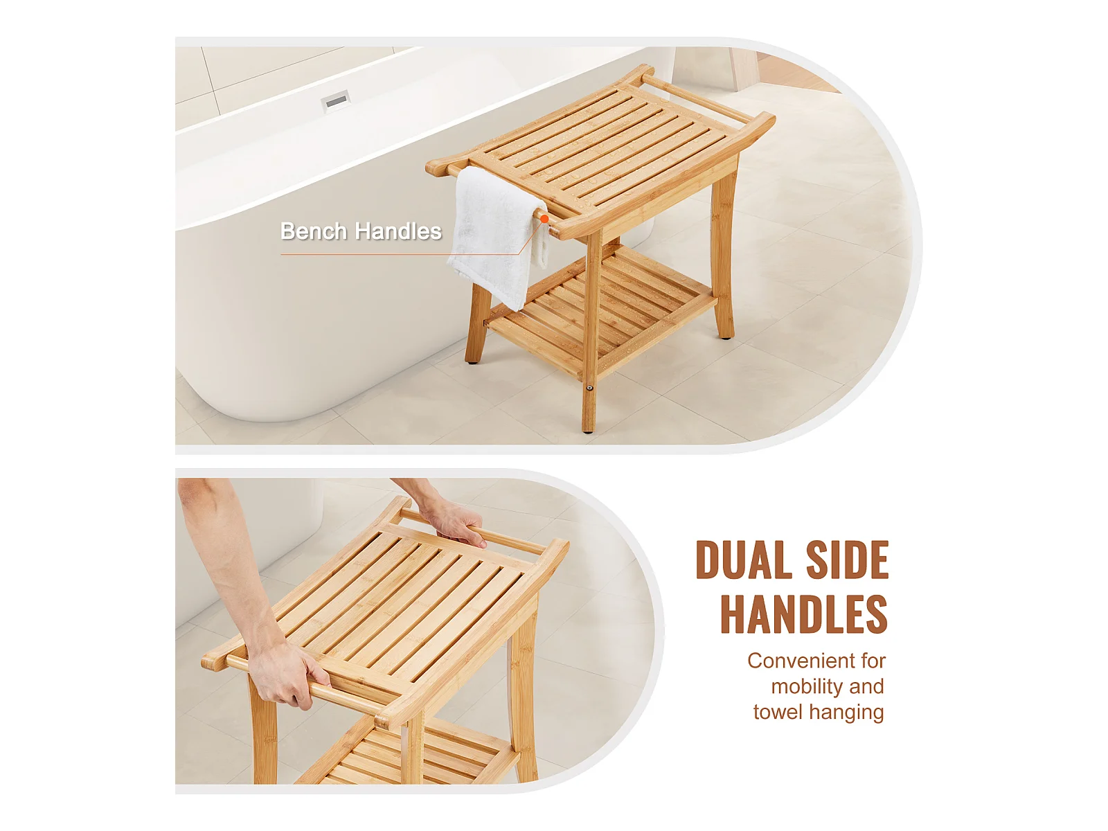 Banc de Douche en Bambou SucceBuy, 61 x 35 x 49 cm, Chaise pour Salle de Bain