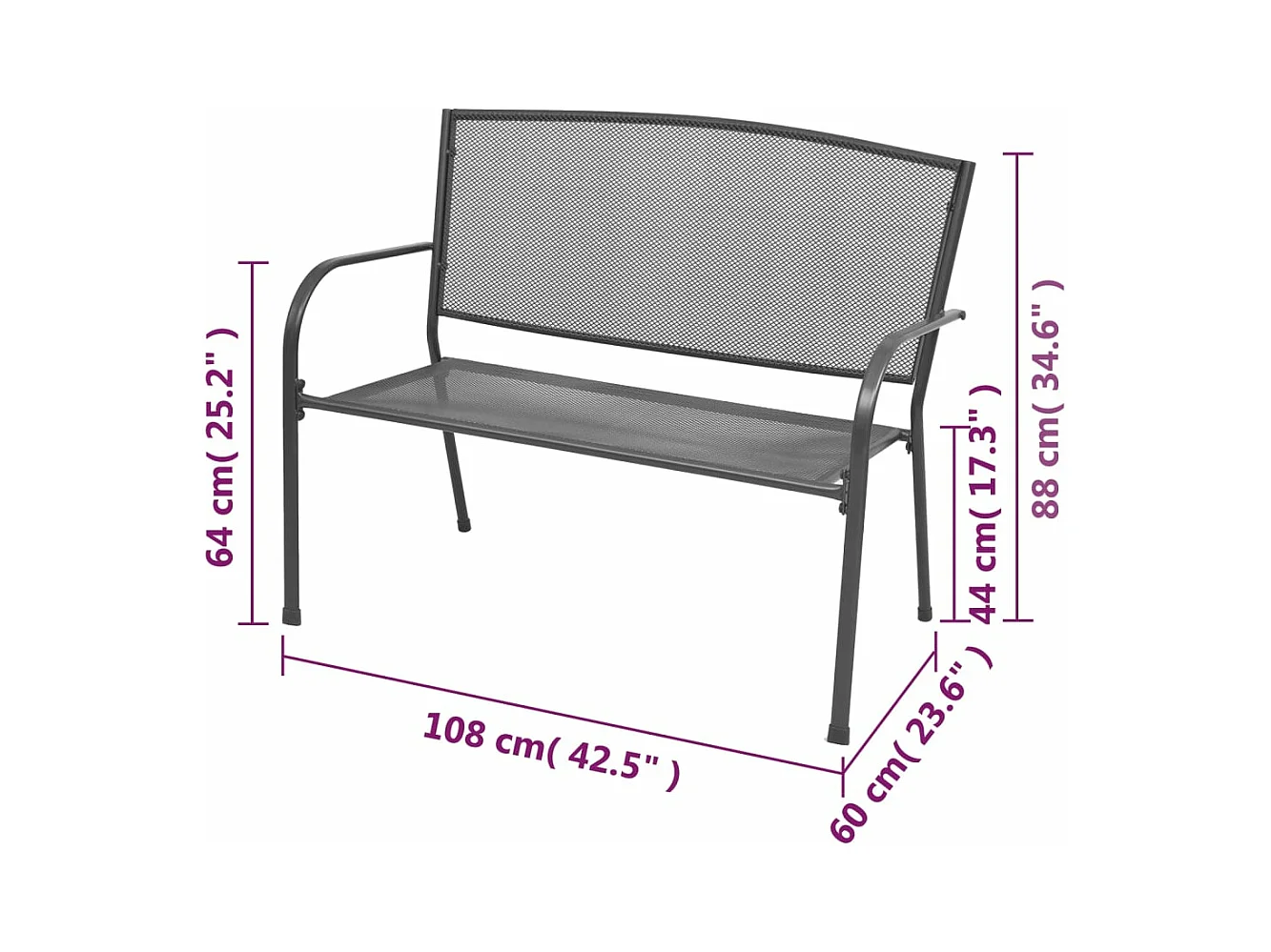 Banc de jardin 108 cm Acier et maille Anthracite REO17953