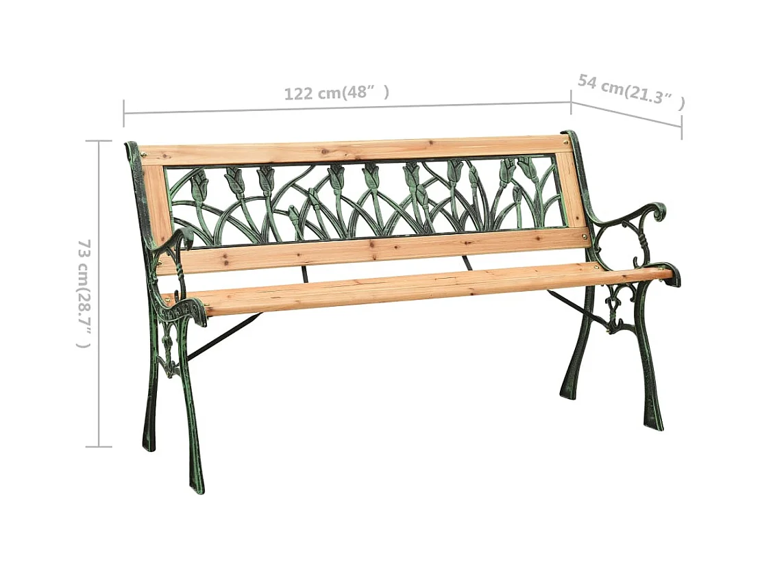 Banc de jardin 122 cm Fonte et bois de sapin massif