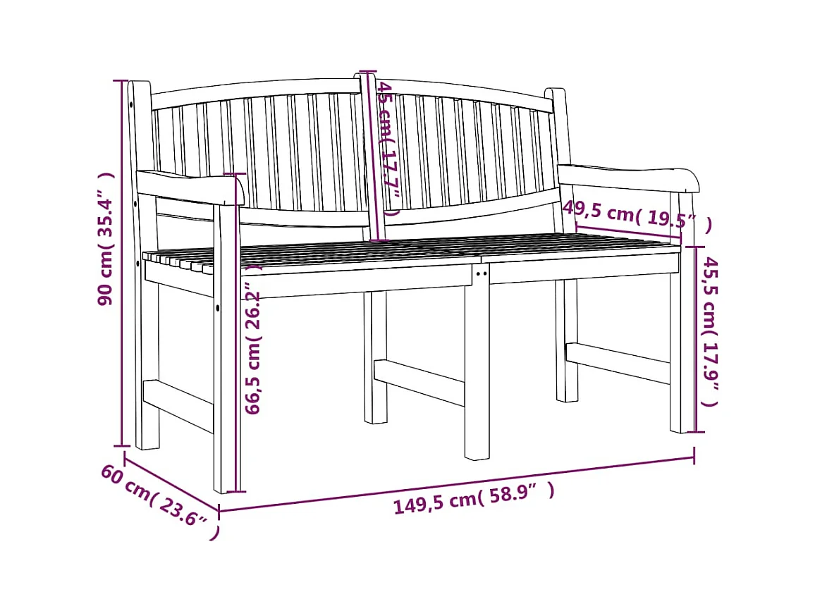 Banc de jardin 149,5x60x90 cm bois de teck solide