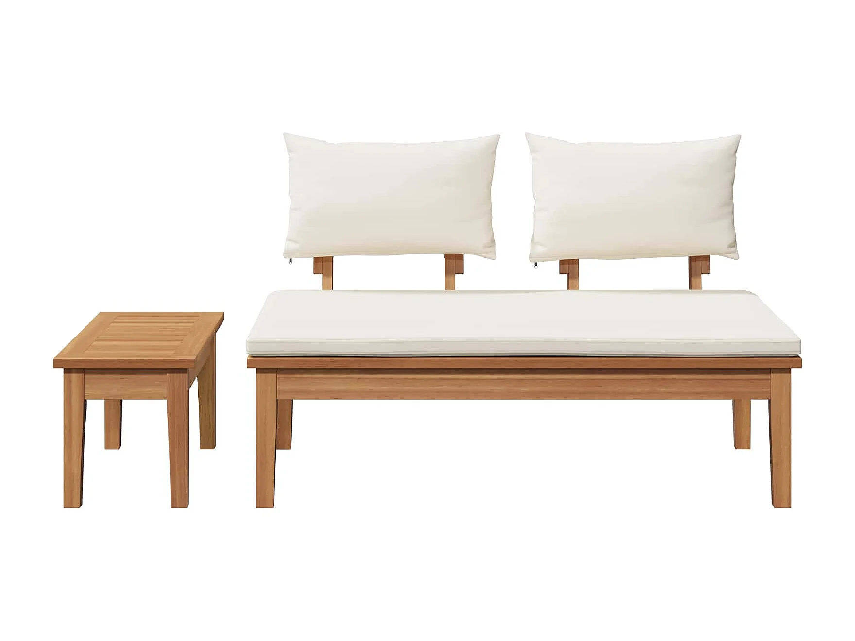 Banc de jardin 2 pcs Crème et marron Bois de teck massif