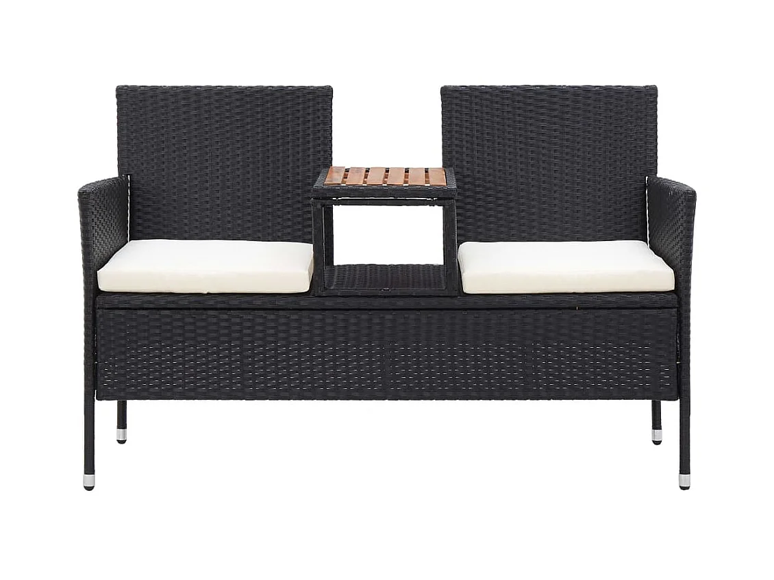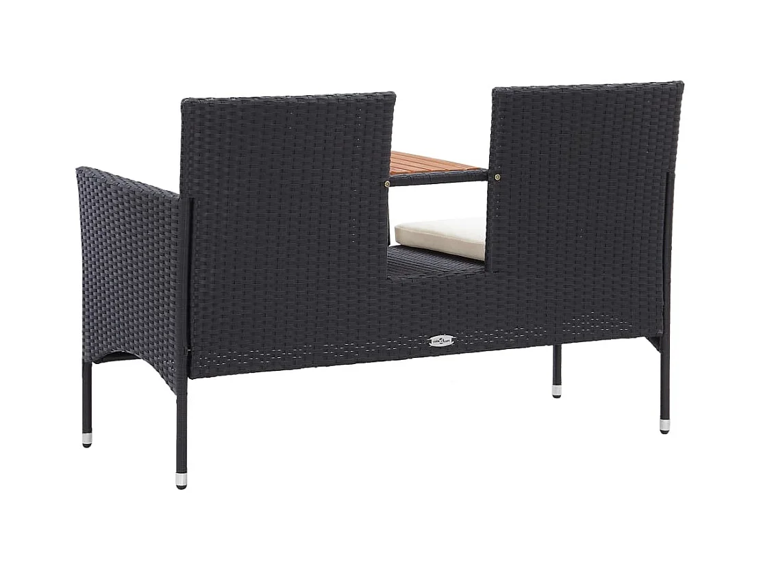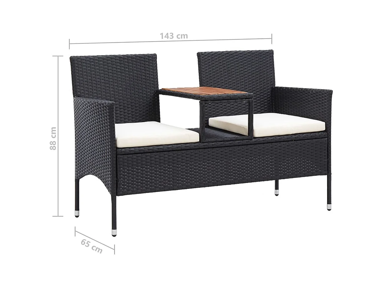 Banc de jardin 2 places et table à thé 143cm Résine tressée Noir