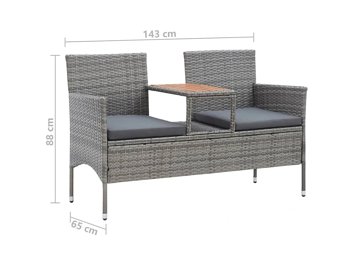 Banc de jardin 2places et table à thé 143cm Résine tressée Gris