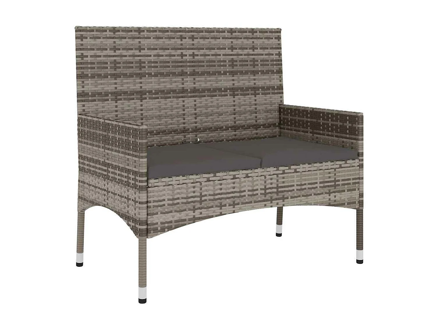 Banc de jardin 2 places et table à thé 143cm Résine tressée Gris