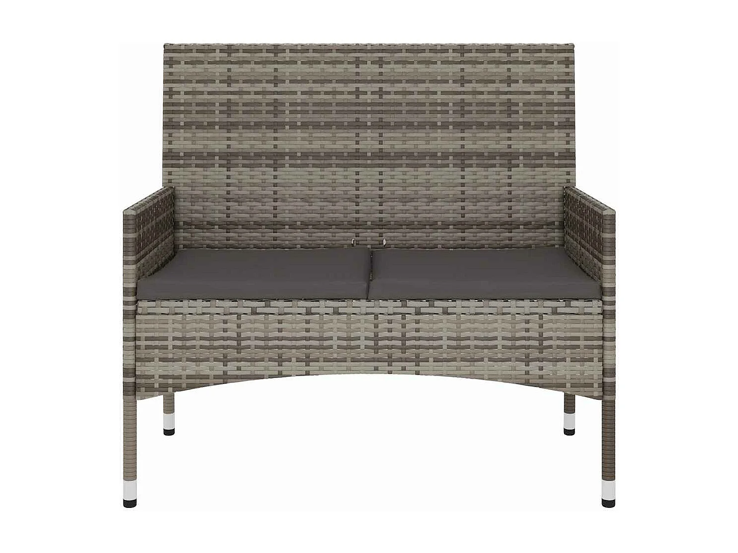 Banc de Jardin à 2 Places avec Coussins Gris Résine Tressée