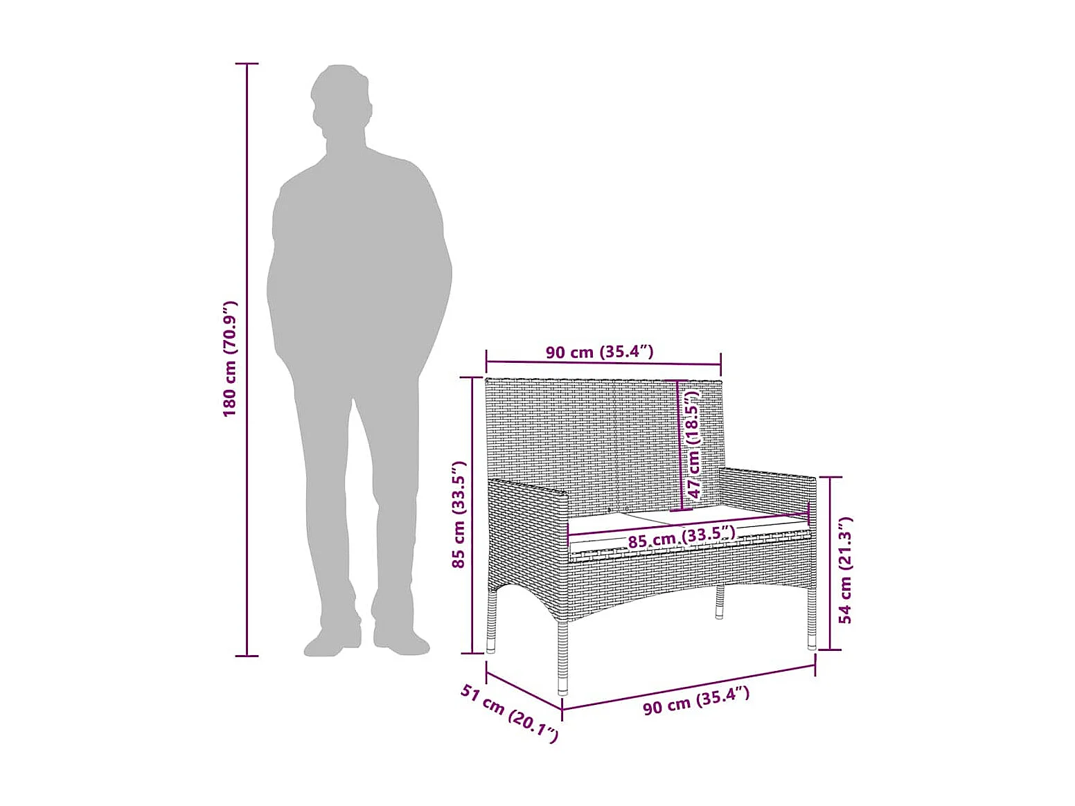 Banc de jardin 2places et table à thé 143cm Résine tressée Noir