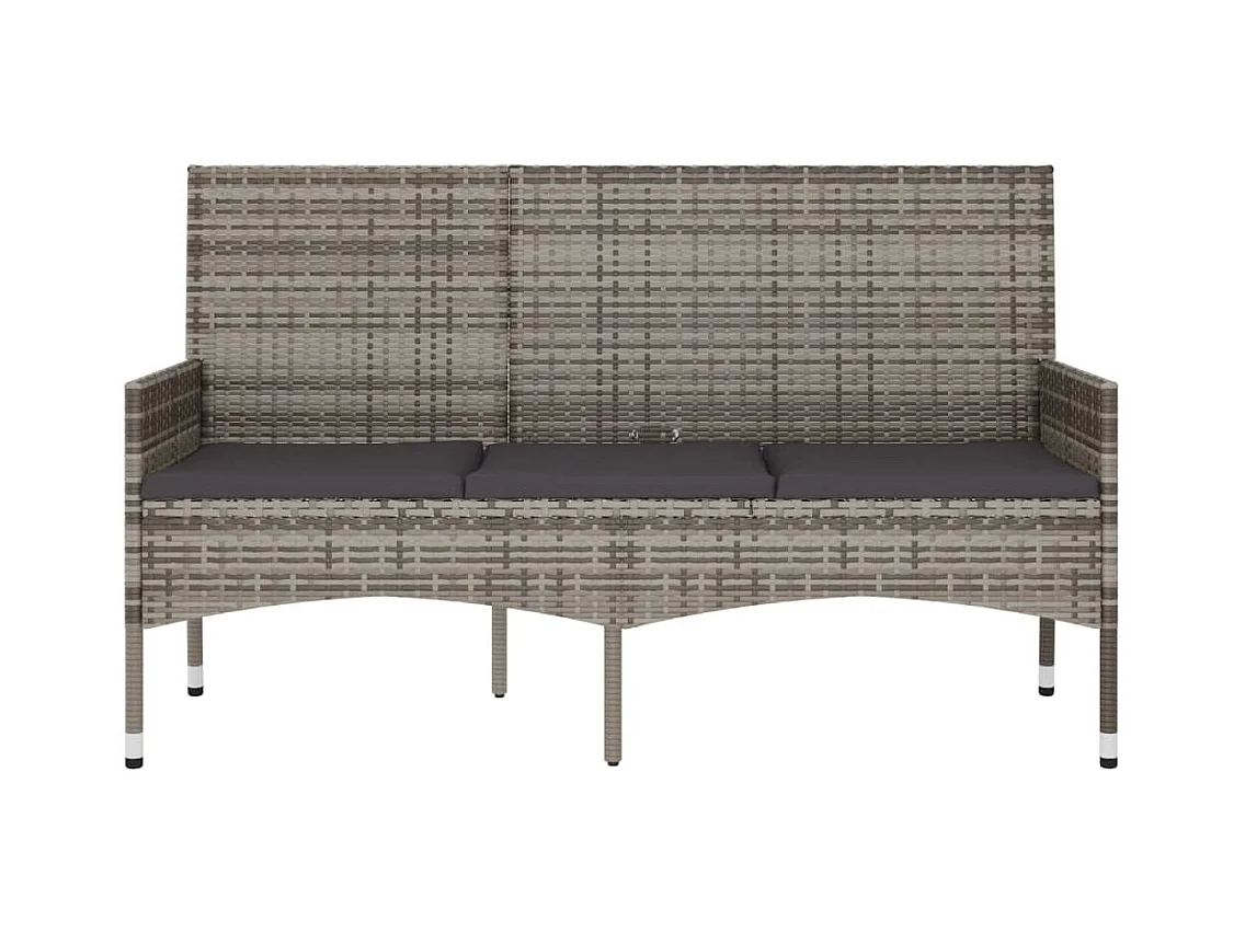 Banc de jardin à 3 places avec coussins Gris Résine tressée