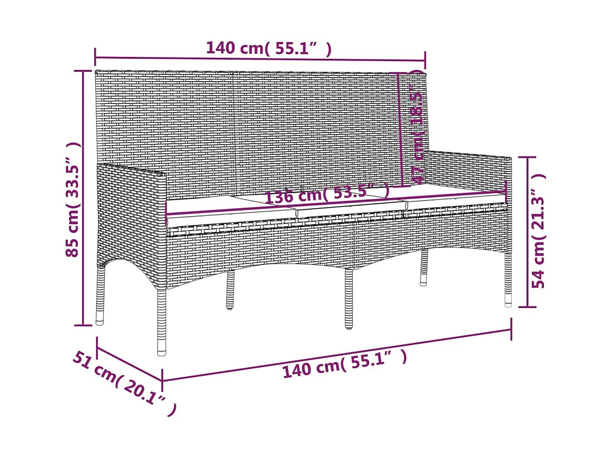 Banc de jardin à 3 places avec coussins Marron Résine tressée