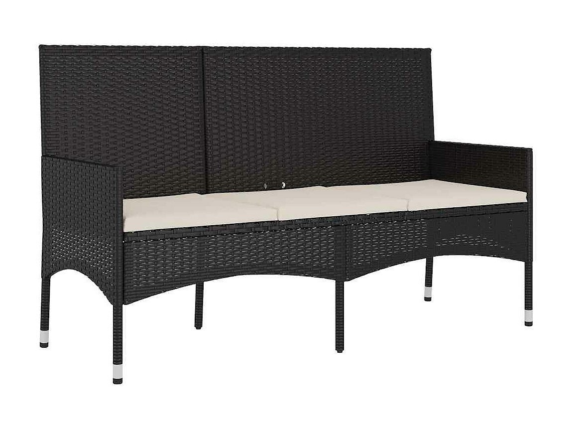Banc de jardin à 3 places avec coussins noir résine tressée FR965938