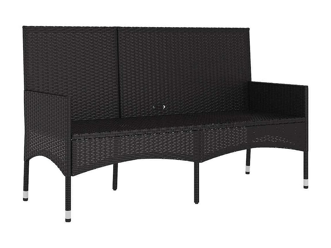 Banc de jardin à 3 places avec coussins noir résine tressée
