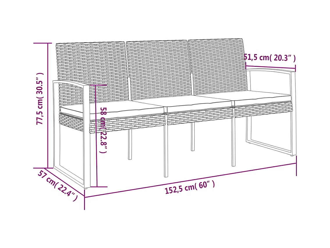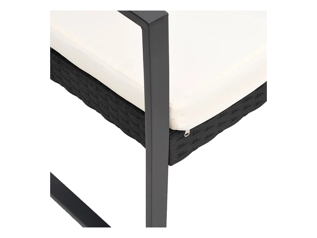 Banc de jardin à 3 places avec coussins noir rotin PP