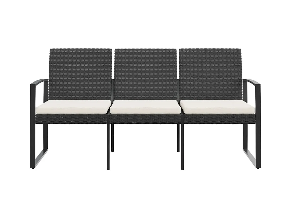 Banc de jardin à 3 places avec coussins noir rotin PP