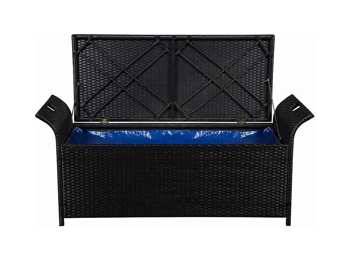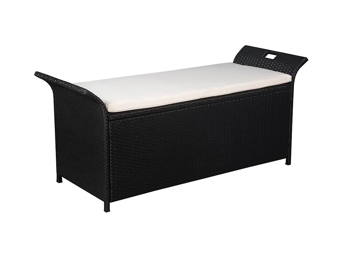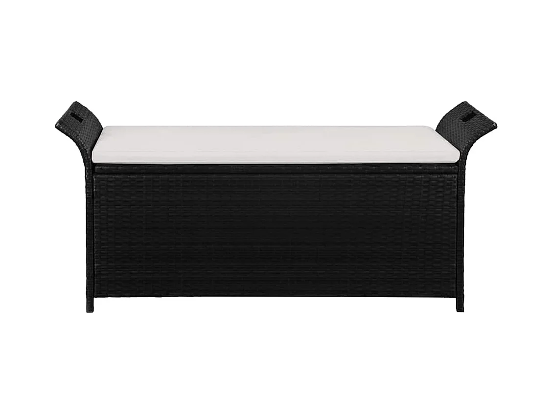 Banc de jardin avec coussin noir 116x46x57 cm résine tressée