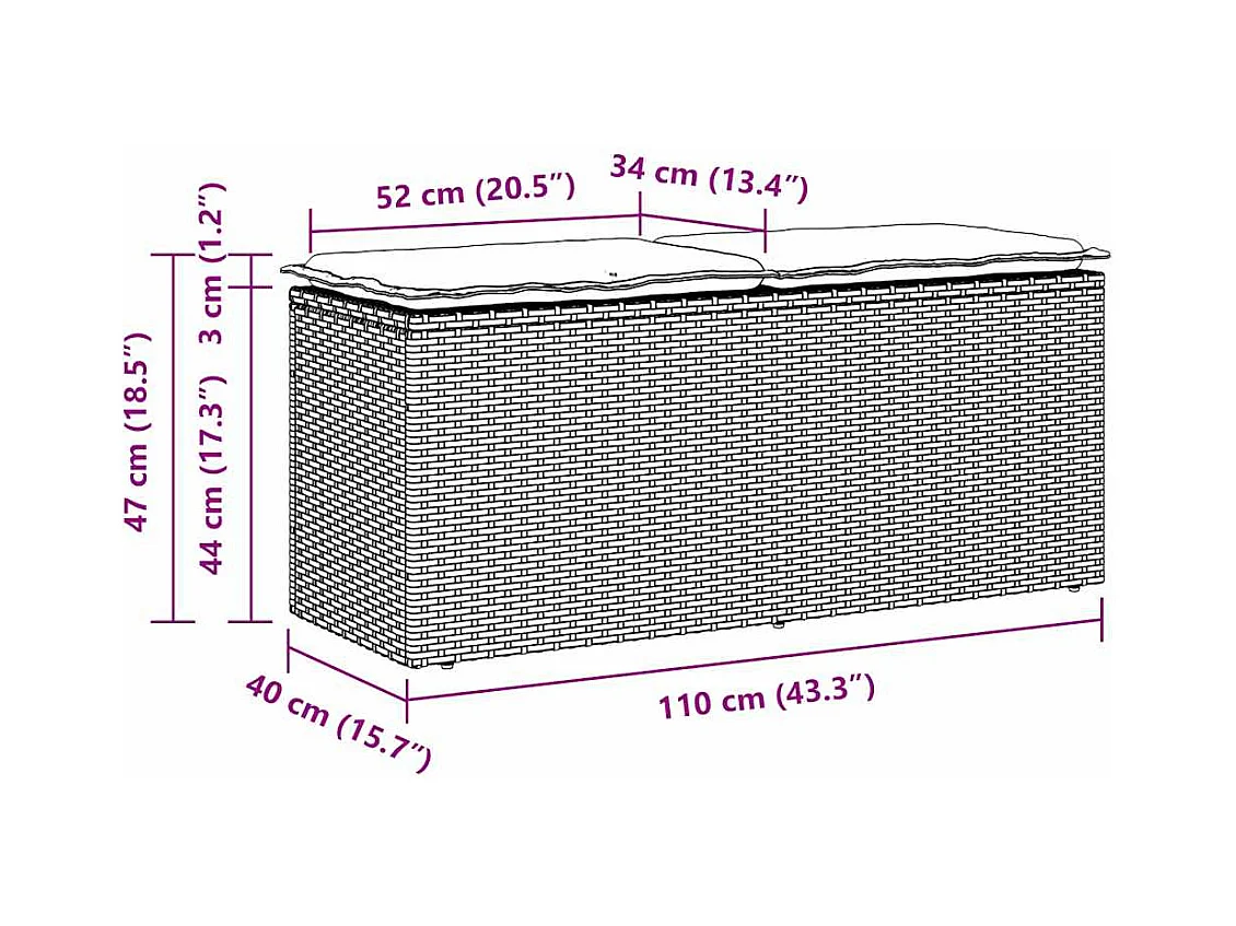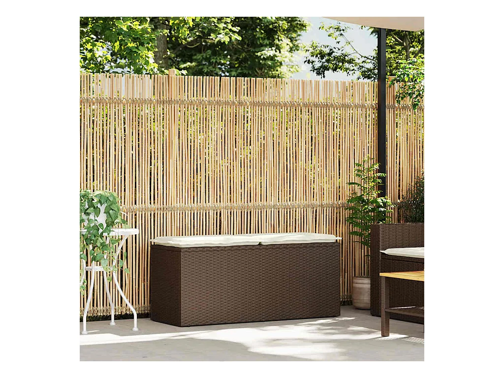 Banc de jardin avec coussin marron 110x40x44 cm résine tressée