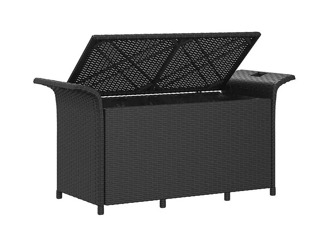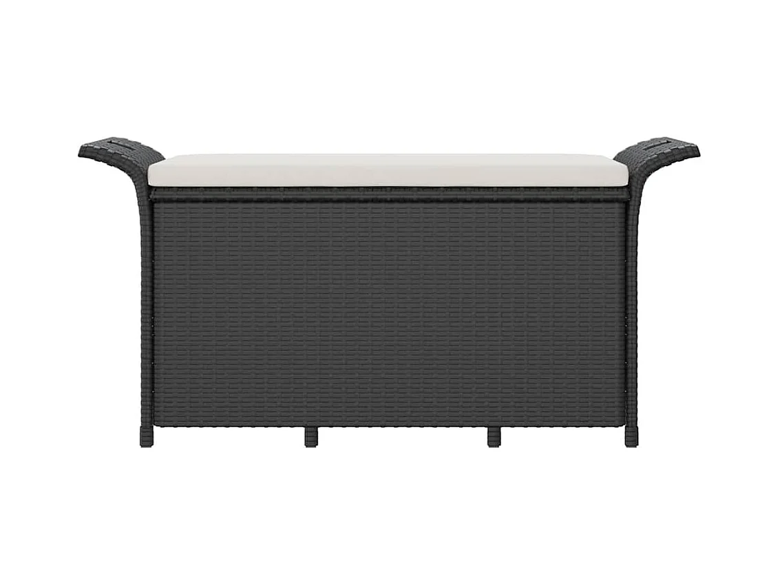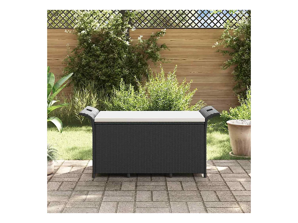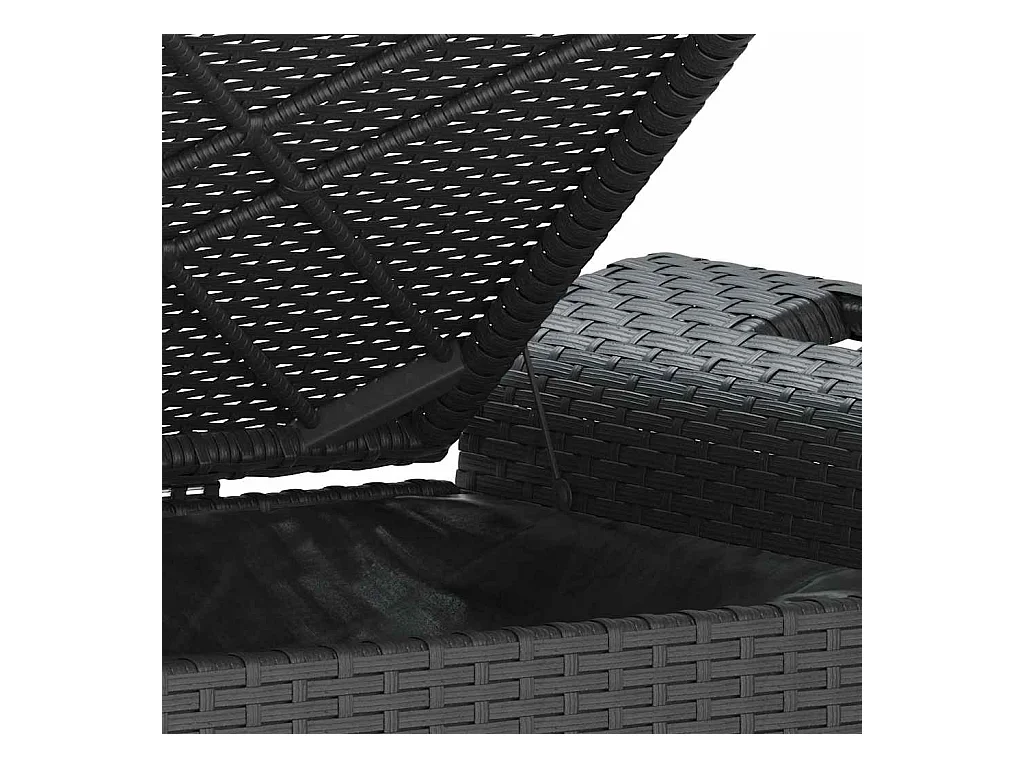 Banc de rangement avec coussin noir 80x51x52 cm résine tressée