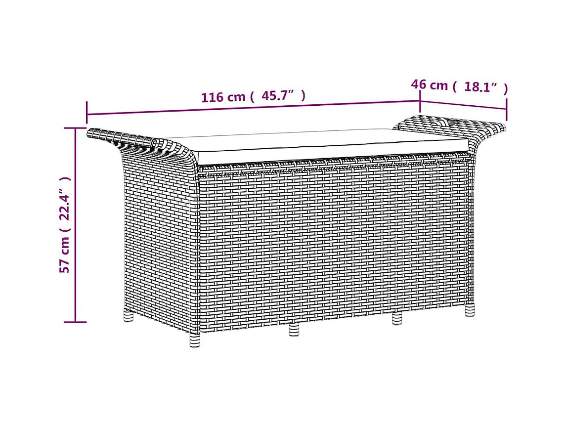 Banc de jardin avec coussin noir 116x46x57 cm résine tressée