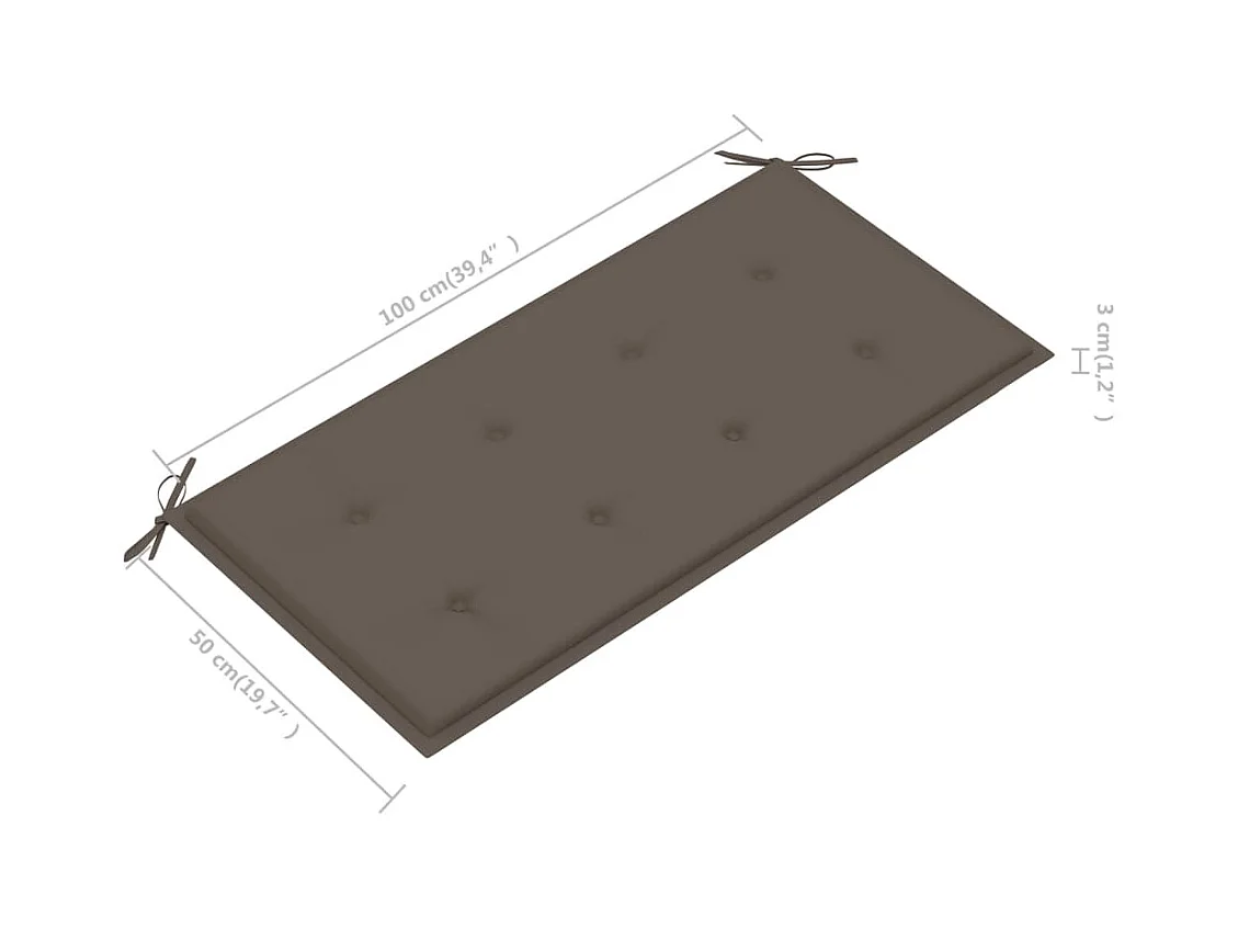 Banc de jardin avec coussin taupe 112 cm Bois de teck massif