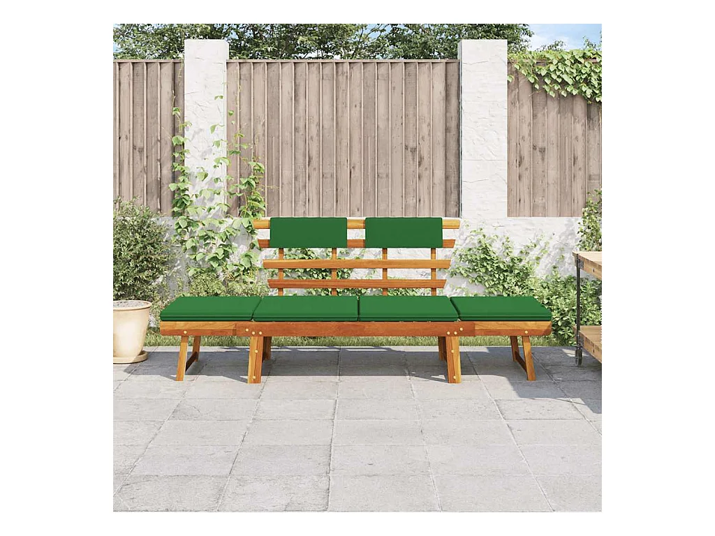 Banc de jardin avec coussins 2-en-1 190 cm Bois solide d'acacia