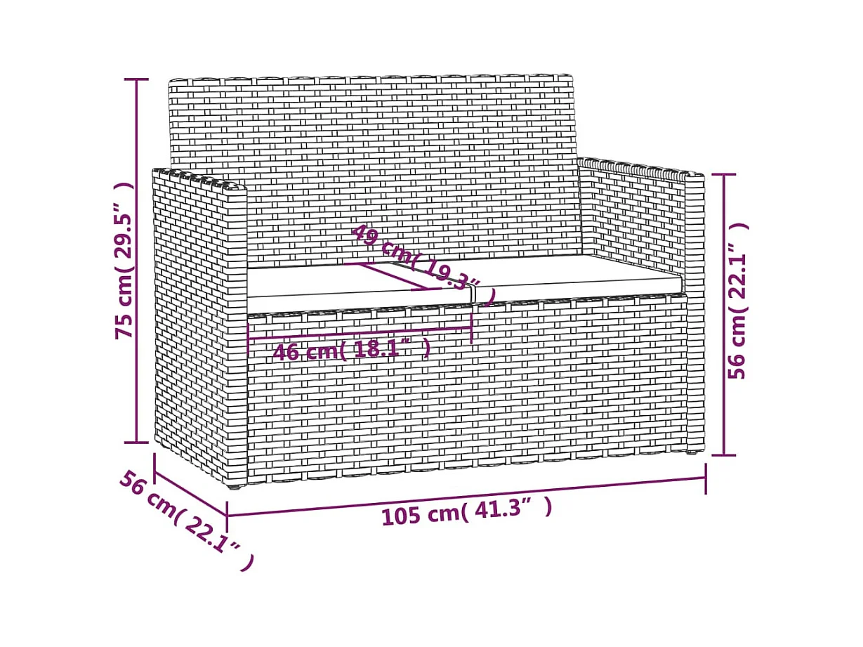 Banc de jardin avec coussins Gris 105 cm Résine tressée