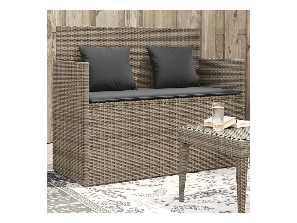 Banc de rangement avec coussin gris 115x51x52 cm résine tressée FR506722