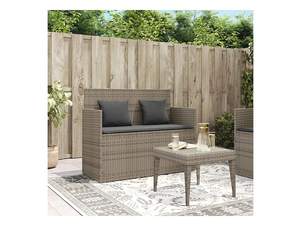 Banc de jardin avec coussins gris clair résine tressée FR250558