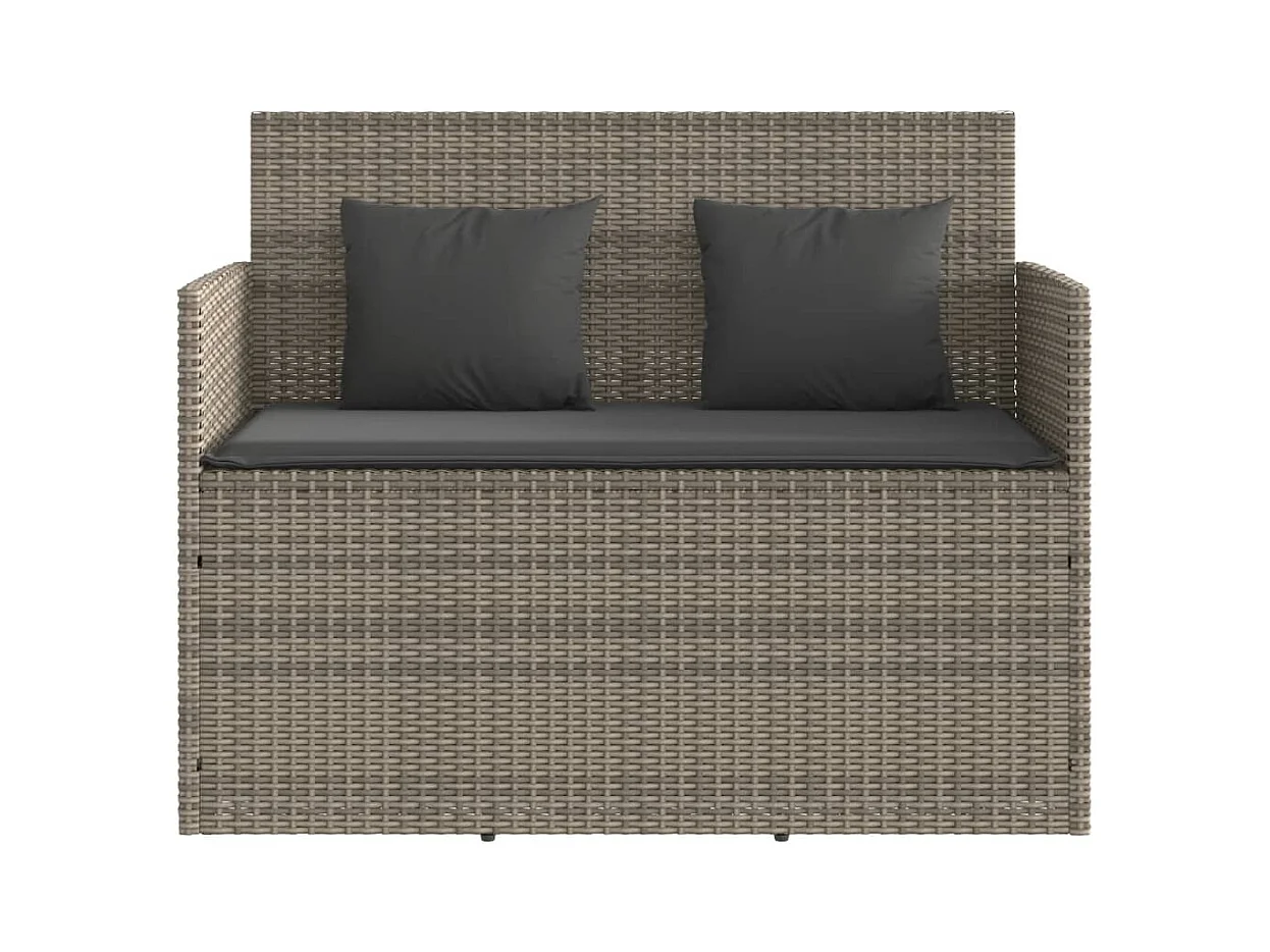 Banc de jardin avec coussins et repose-pied gris résine tressée FR178711