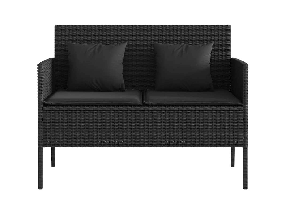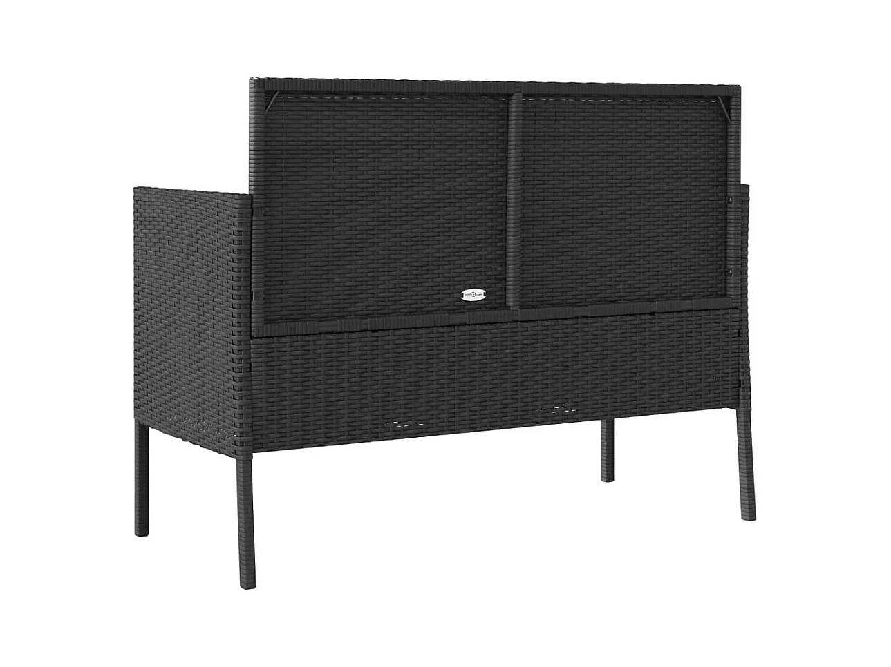 Banc de jardin à 2 places avec coussins noir rotin PP