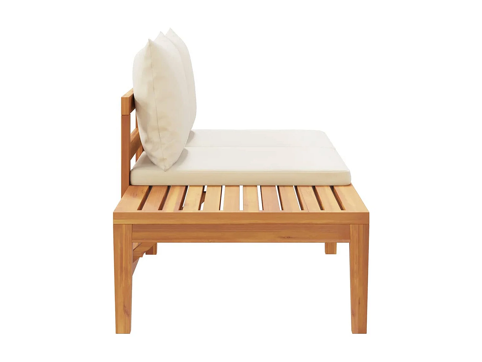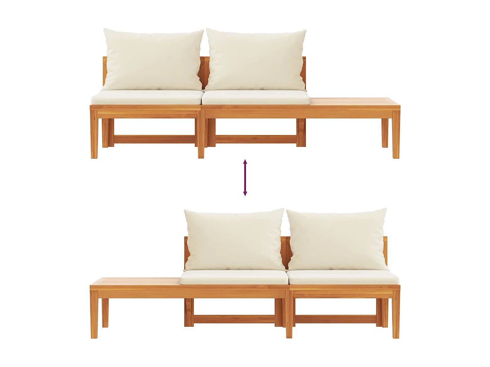 Banc de jardin avec table et coussins Blanc crème Teck solide