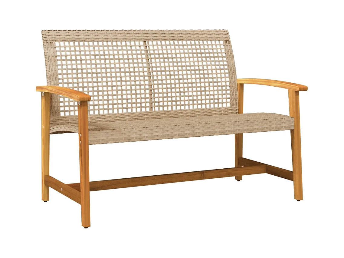 Banc de jardin beige 112 cm résine tressée et bois d'acacia