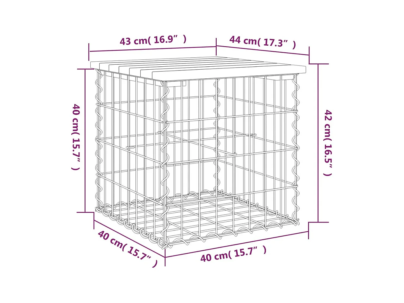 Banc de jardin design de gabion 43x44x42 cm bois massif de pin