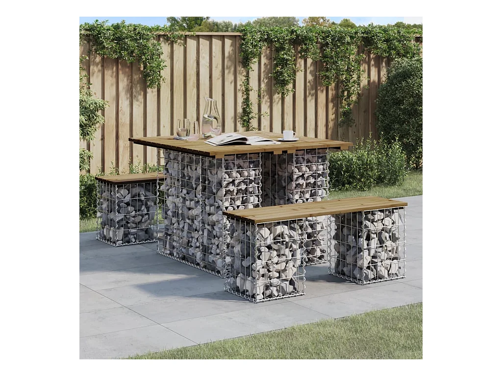 Banc de jardin design gabion 100x70x72 cm bois de pin imprégné