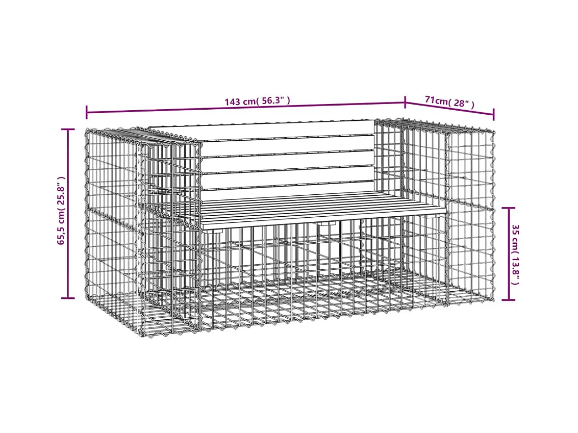 Banc de jardin design gabion 143x71x65,5 bois massif de pin