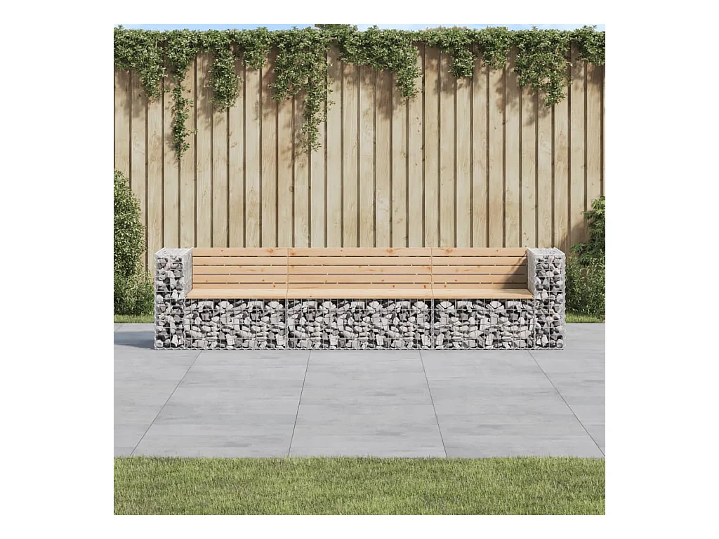 Banc de jardin design gabion 287x71x65,5 cm bois massif de pin
