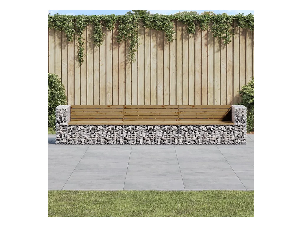 Banc de jardin design gabion 347x71x65,5cm bois de pin imprégné