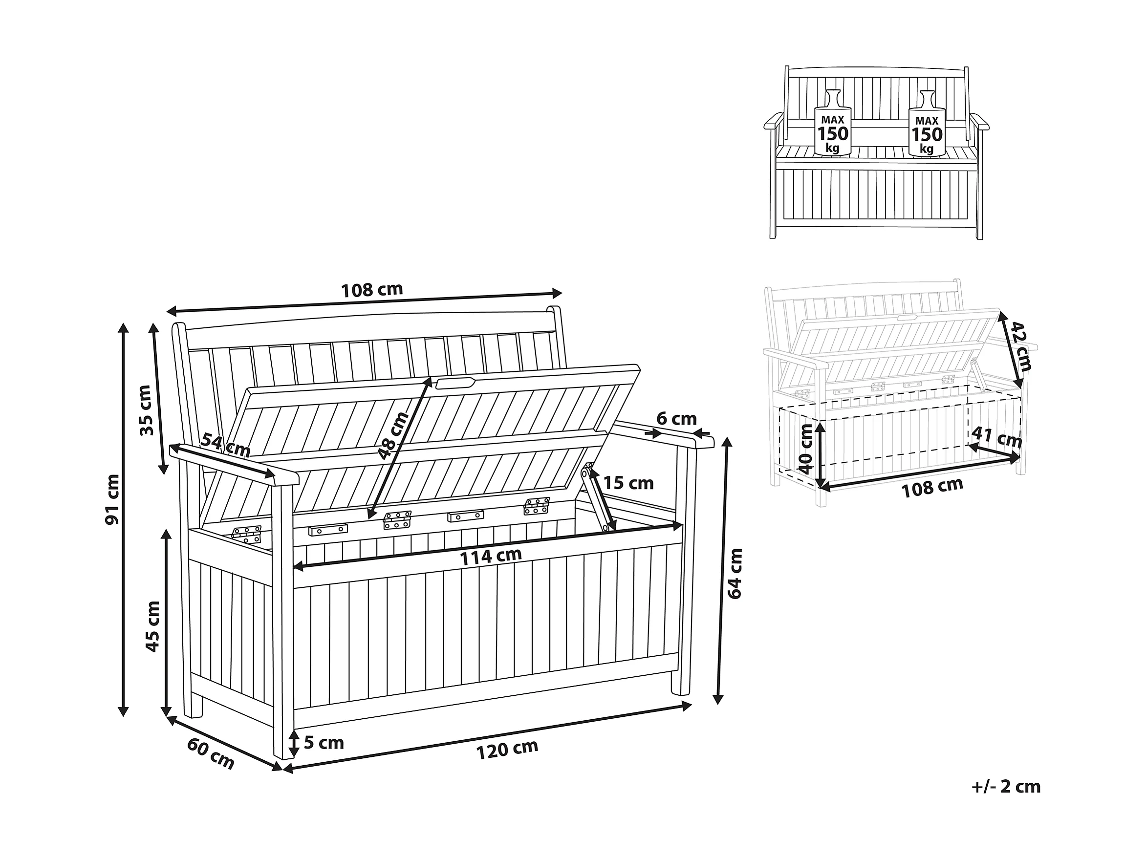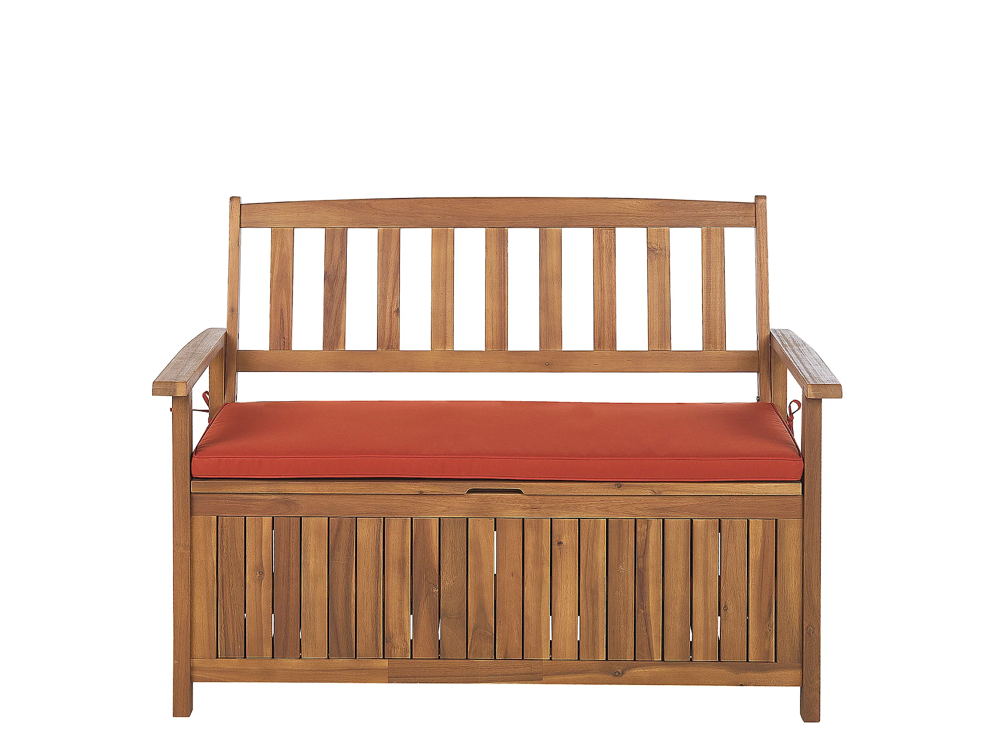 Banc avec coussin d'assise SOVANA 120 cm avec rangement Acacia Rouge