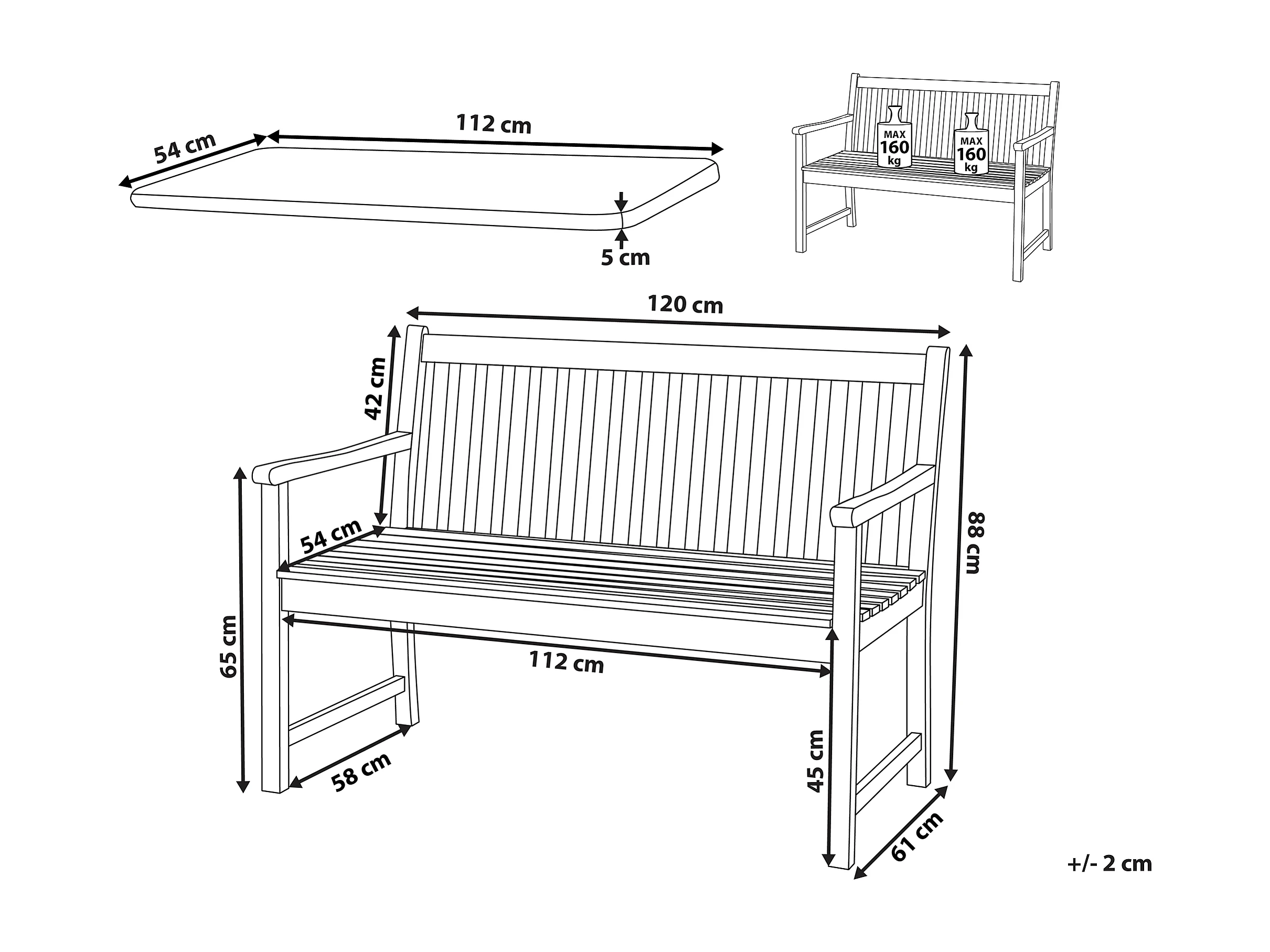 Banc avec coussin d'assise VIVARA 120 cm Bois d'acacia certifié Bleu marine