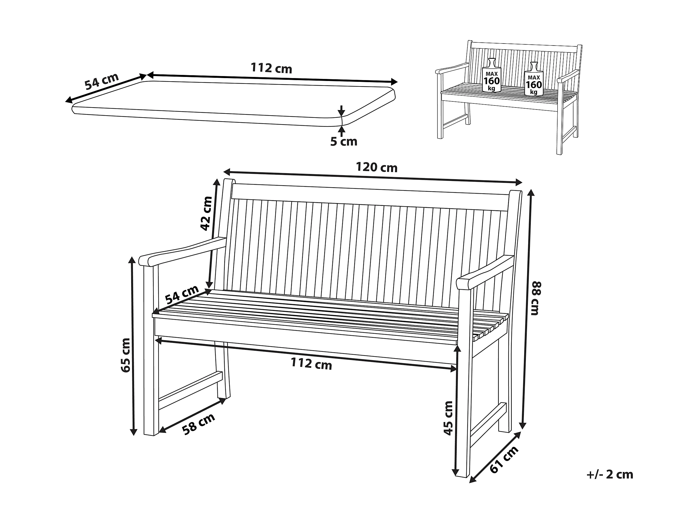 Banc avec coussin d\'assise VIVARA 120 cm Bois d\'acacia certifié Beige