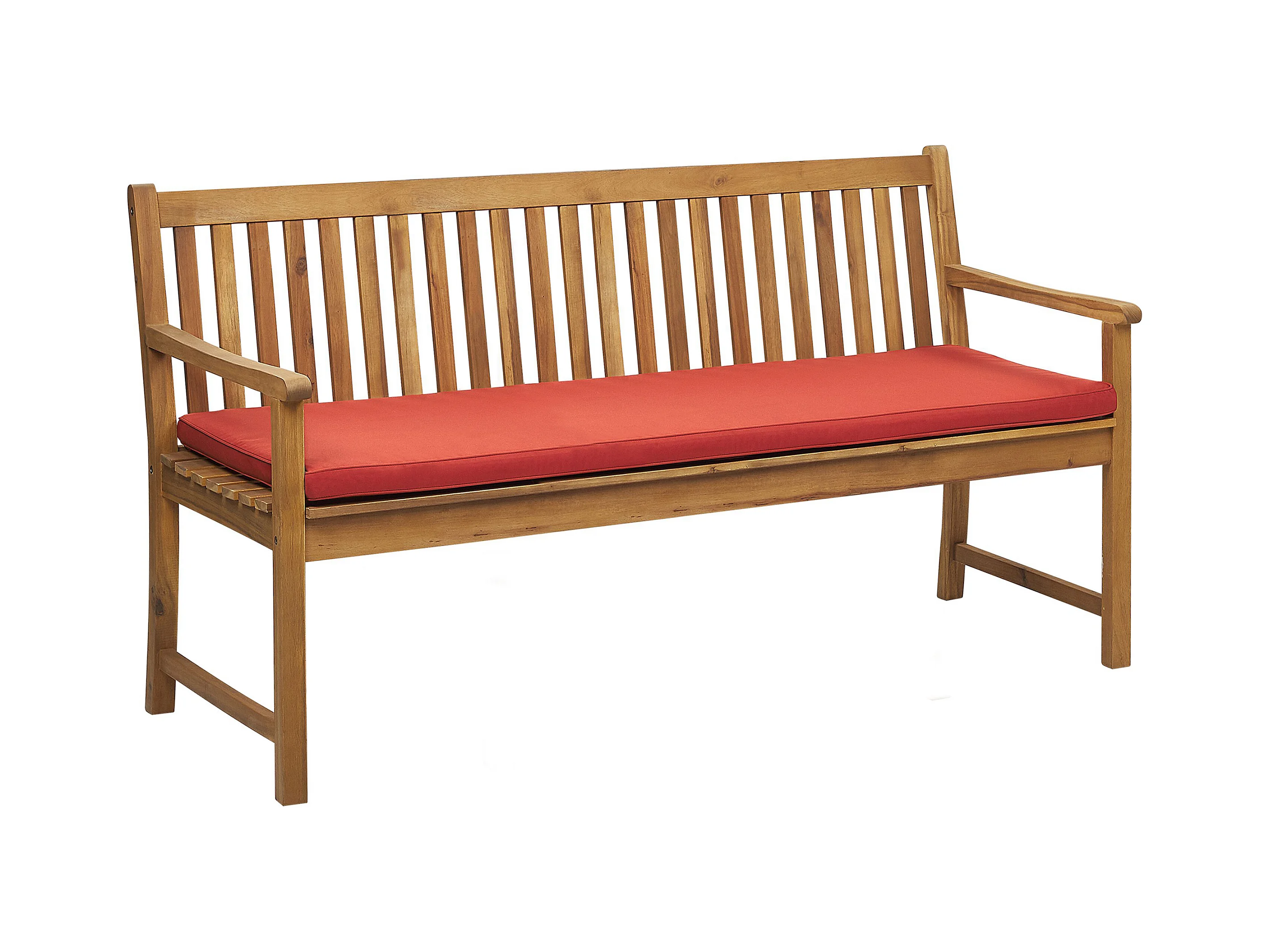 Banc avec coussin d'assise VIVARA 160 cm Bois d'acacia certifié Frêne clair Rouge foncé