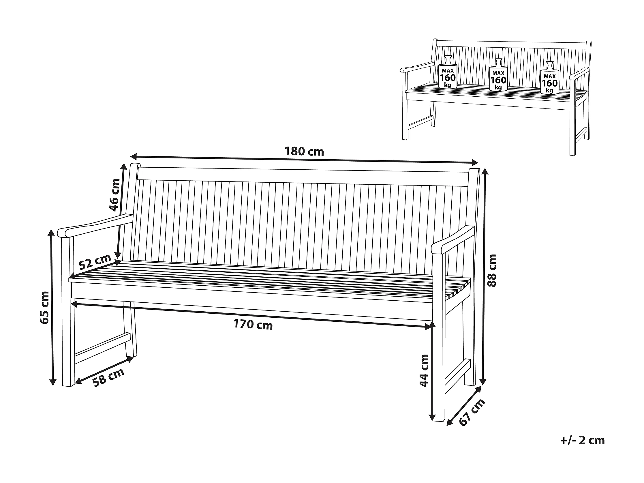 Banc de jardin VIVARA 180 cm Bois d'acacia certifié Marron clair