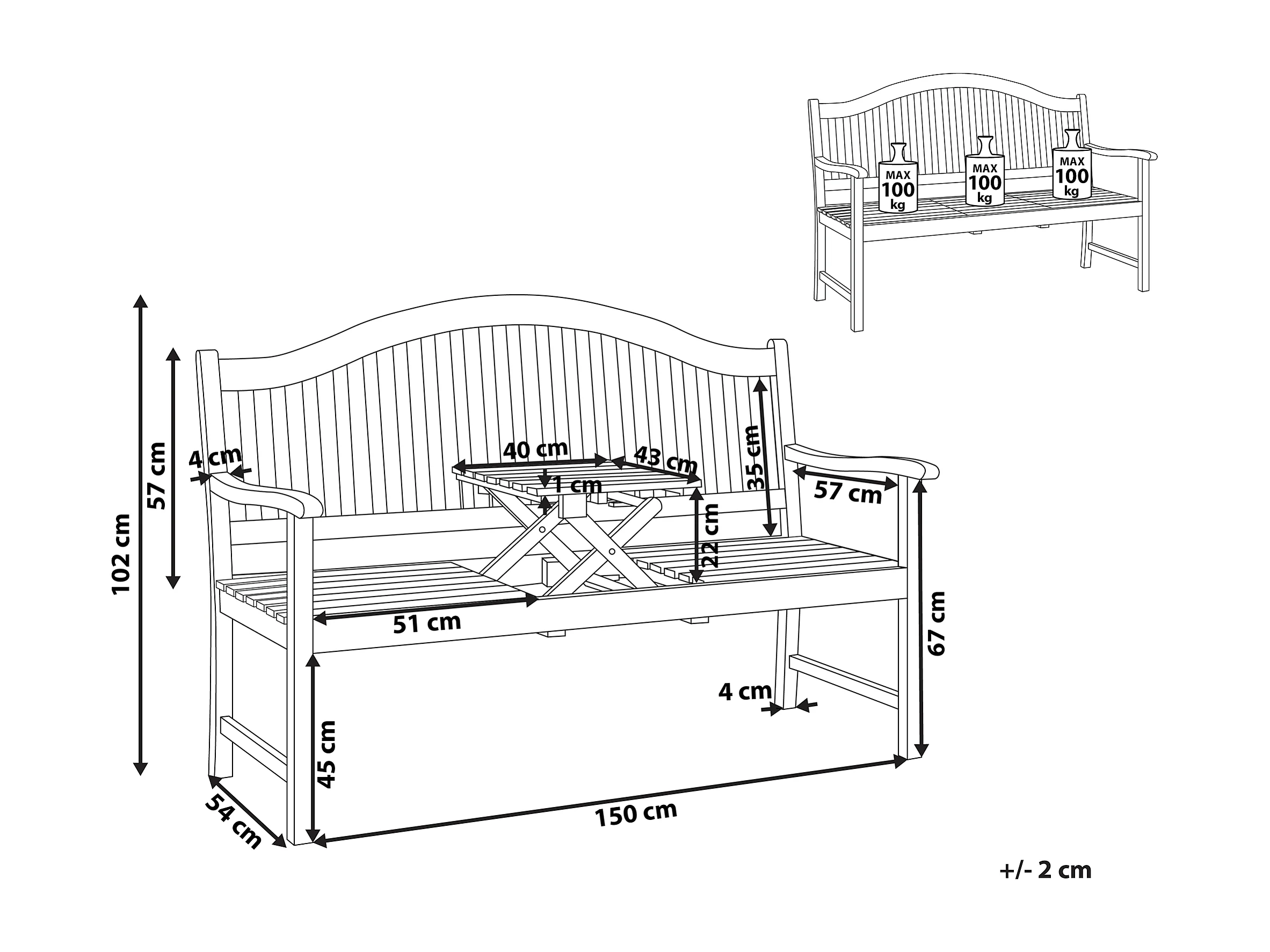 Banc de jardin HILO 150 cm Acacia Marron