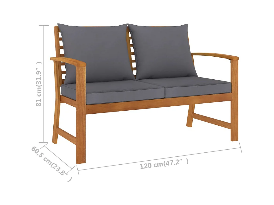 Banc de jardin 120cm et coussin gris foncé Bois solide d'acacia