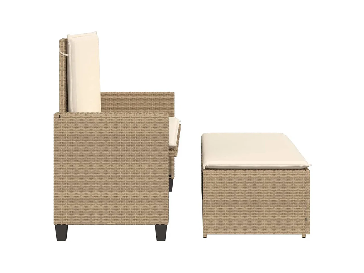 Banc de jardin et coussins et repose-pied beige résine tressée