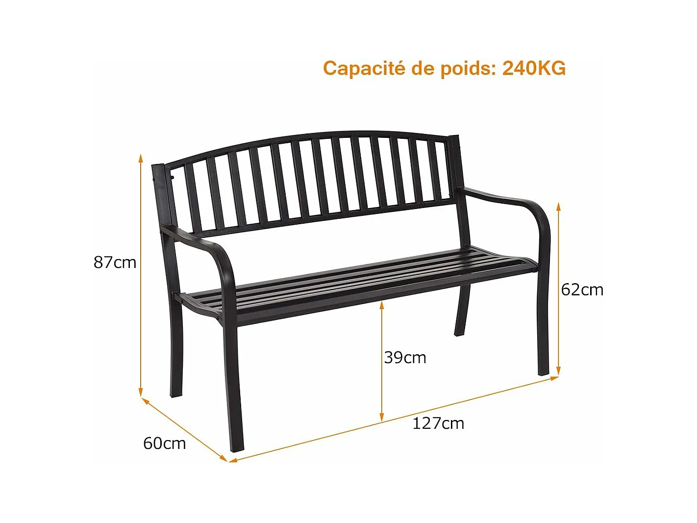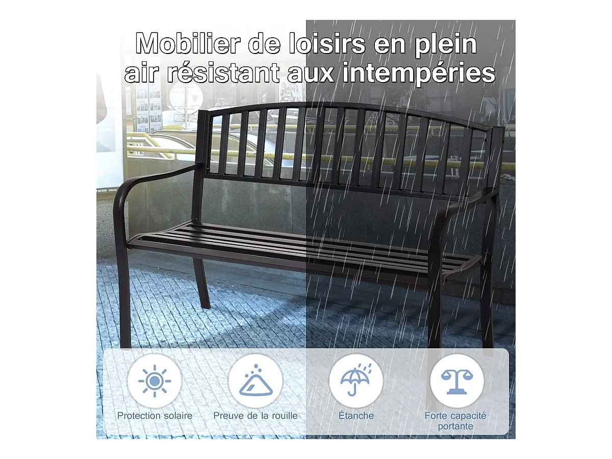 Banc de Jardin 2 Places en Métal 127 x 60 x 85 cm Style Classique Charge max : 280 KG Banquette de Jardin